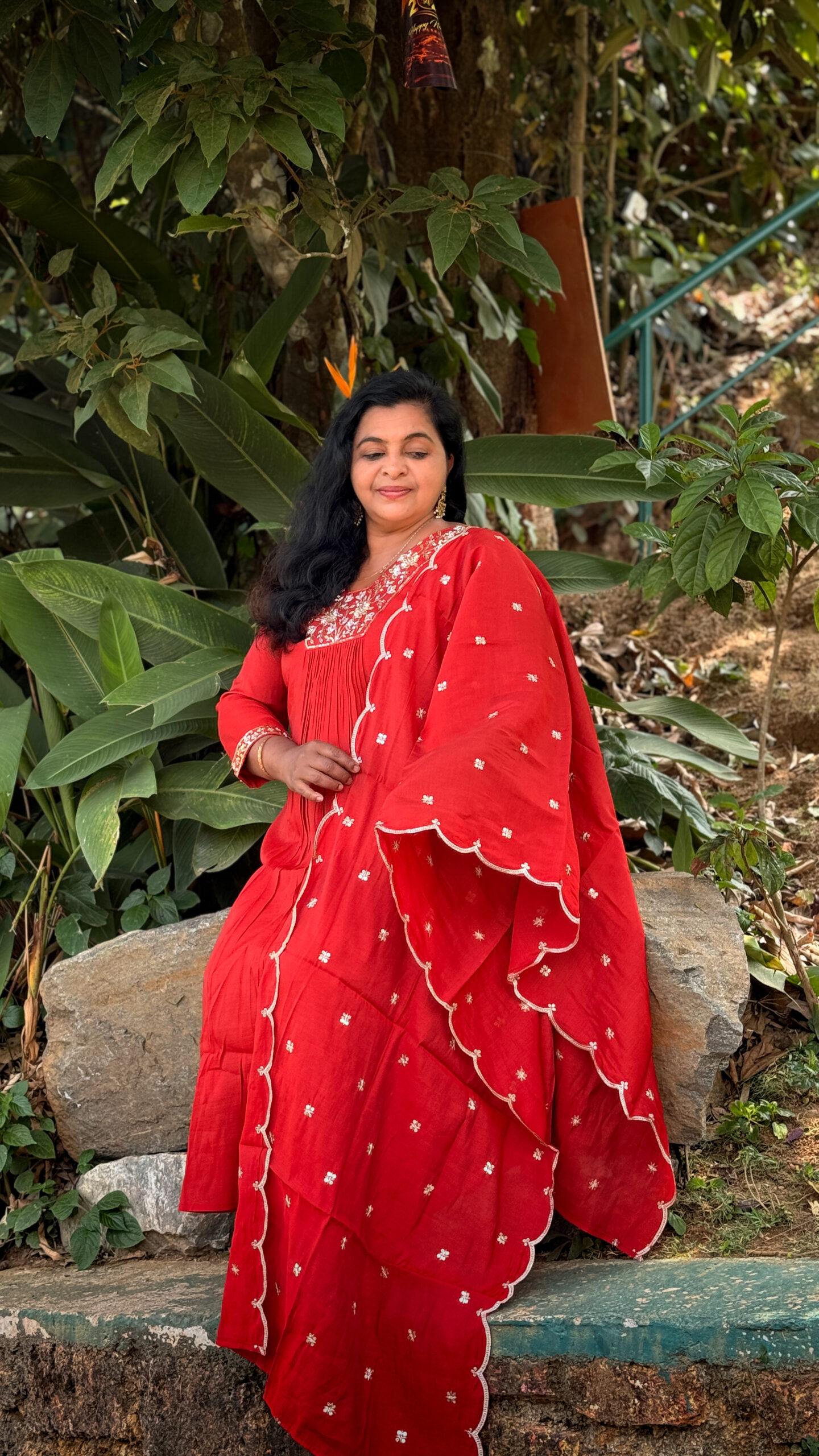 DARK ORANGE FROCK SET WITH SEMI PALAZO BOTTOM AND BEAUTIFUL DUPPATTA