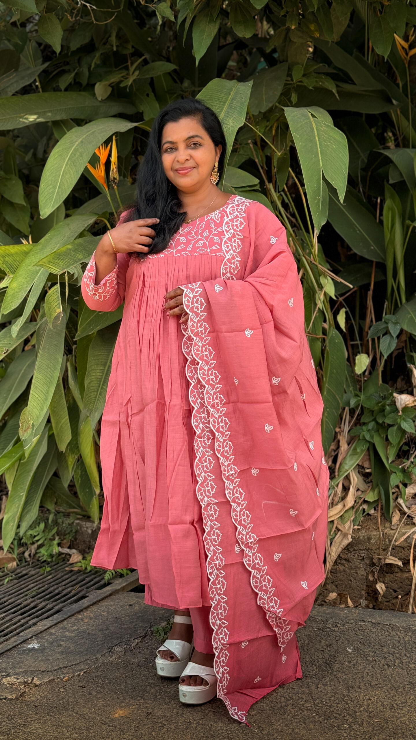 ROSE FROCK SET WITH SEMI PALAZO BOTTOM AND BEAUTIFUL DUPPATTA